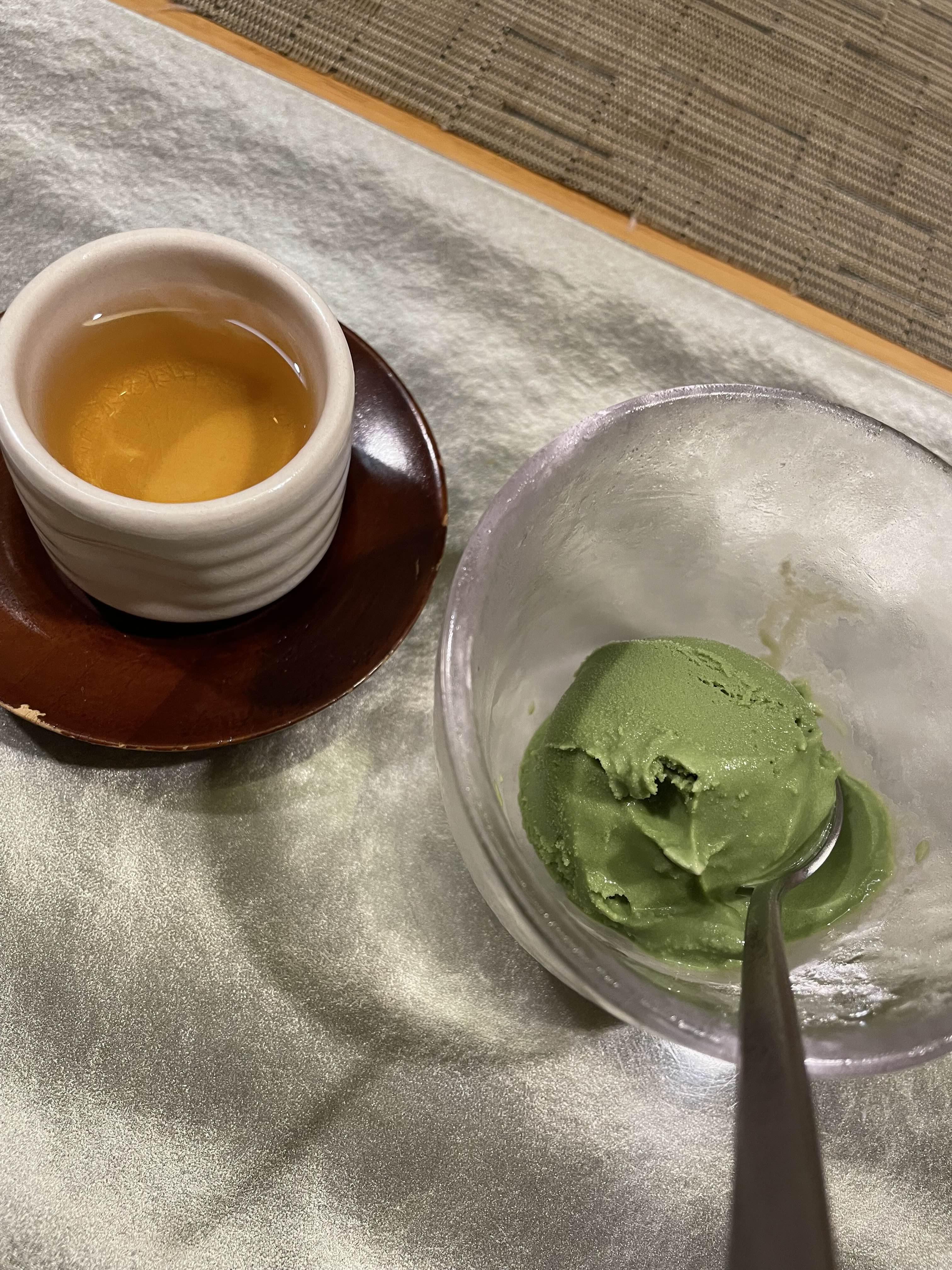 후식으로 나온 녹차 아이스크림과