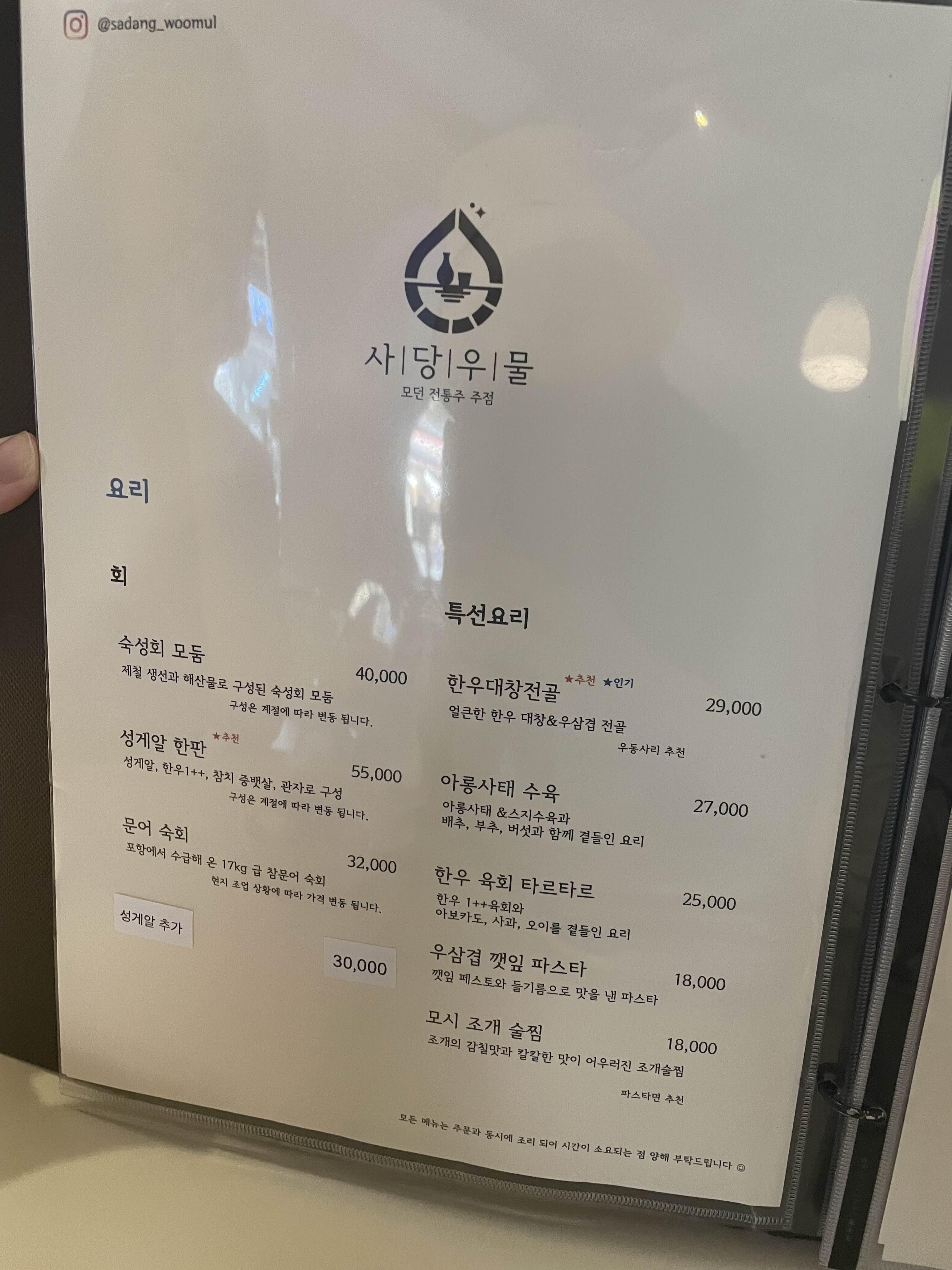 사당우물 메뉴 가격