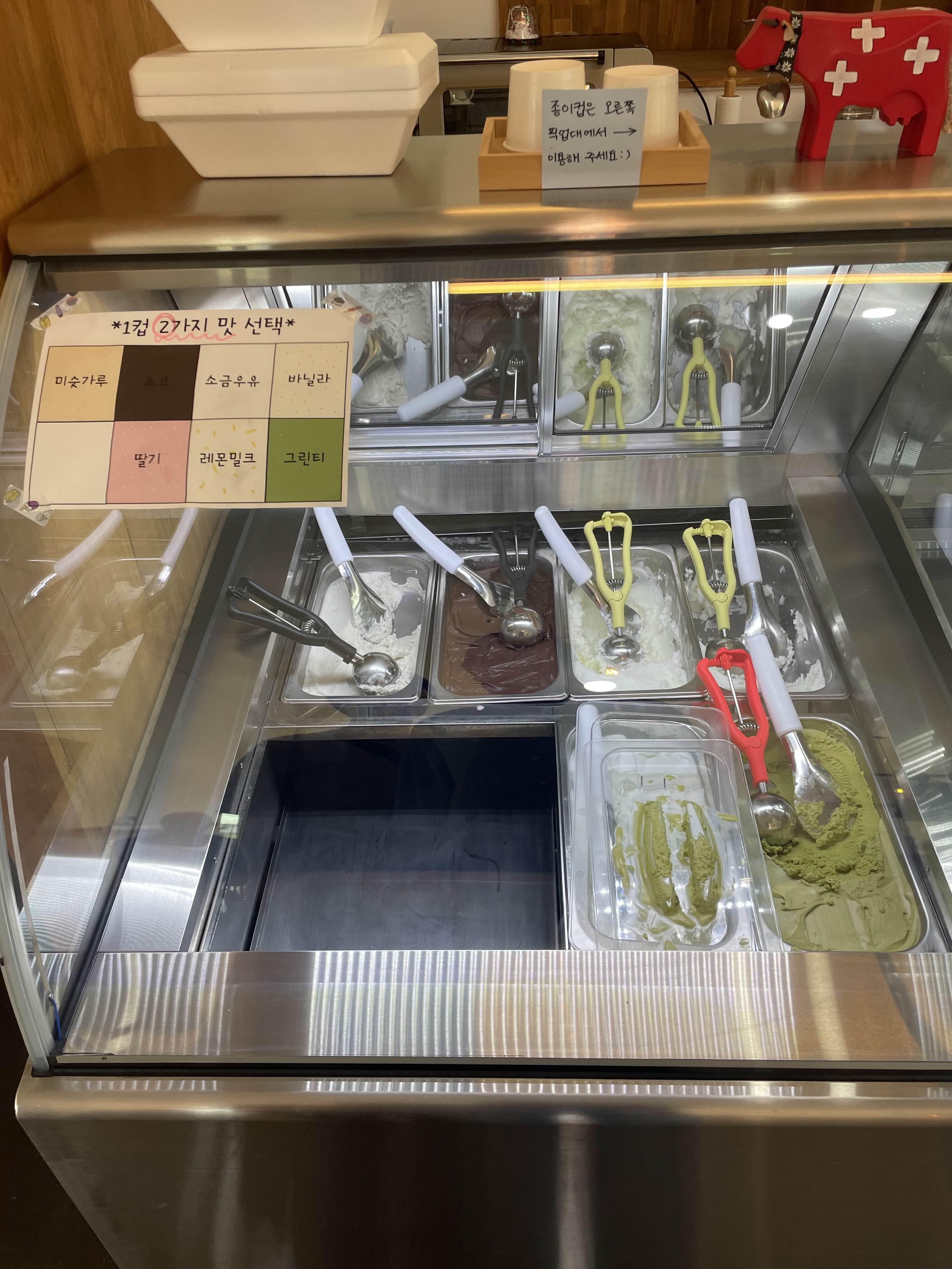 미숫가루 초코 소금우유 바닐라 딸기 레몬밀크 그린티가 있나본데 나는 소금우유와 초코를 시켰다.